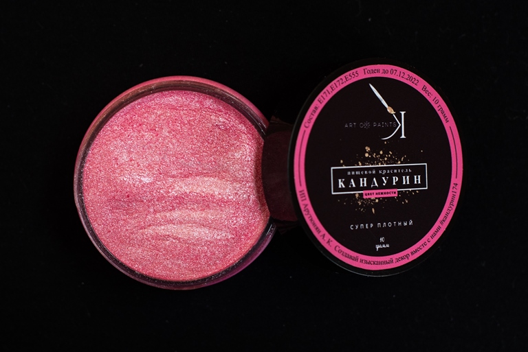 Кандурин - пищевой краситель, порошок с блеском для окрашивания поверхностей и украшения кондитерских изделий. Кандурин – это совершено безопасный пищевой краситель, который имеет нейтральный вкус, легко смывается.