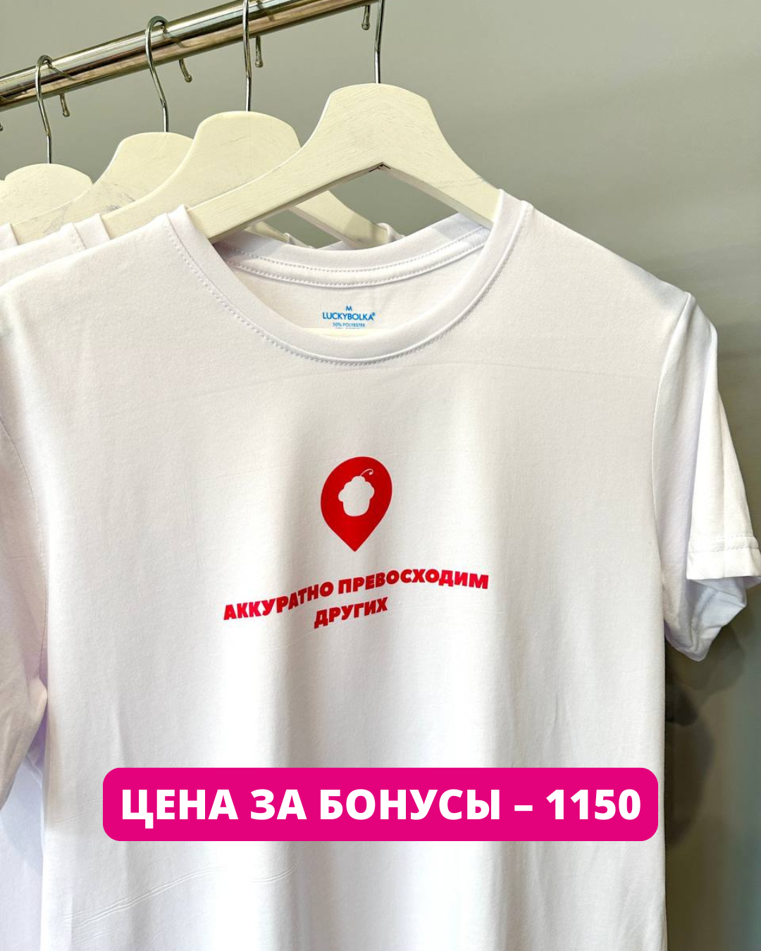 Этот мерч мы запустили специально для тех, кто любит стиль и торты! Теперь у вас есть уникальная возможность приобрести тематическую футболку с яркими надписями не только обычным способом, но также за бонусы, получая еще больше выгоды! Чтобы приобрести товар за бонус напишите нашему менеджеру!