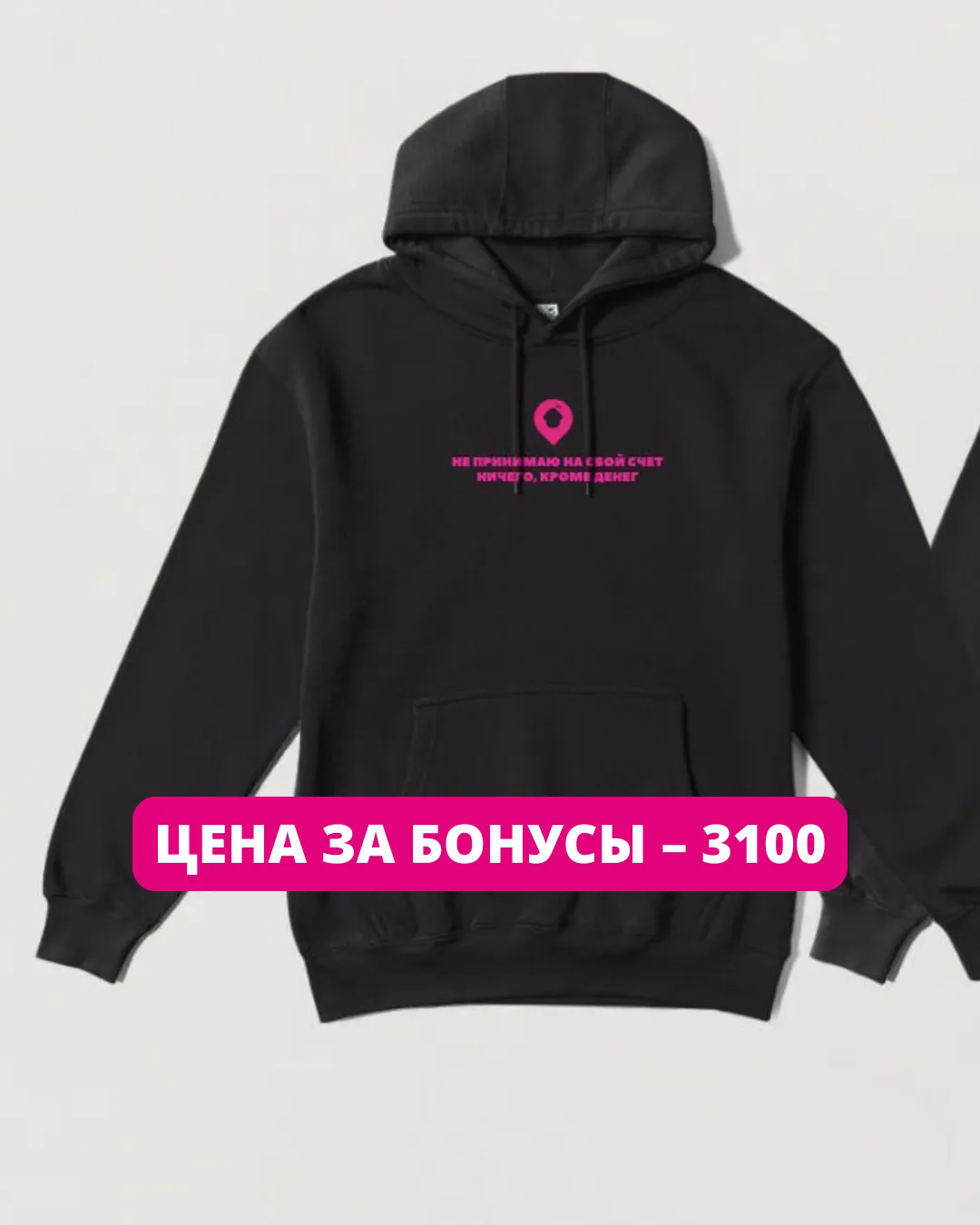 Этот мерч мы запустили специально для тех, кто любит стиль и торты! Теперь у вас есть уникальная возможность приобрести тематическую толстовку с яркими надписями не только обычным способом, но также за бонусы, получая еще больше выгоды! Чтобы приобрести товар за бонус напишите нашему менеджеру!